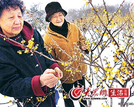 2月25日,濟南千佛山景區(qū)臘梅園里,雪壓花枝頭,花在雪中俏,美景引來了眾多游客。
