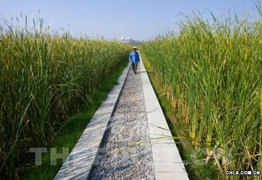 濕地中間的小路上鋪有滲水性很好的石子