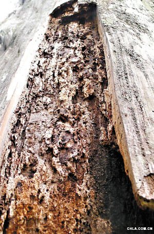 有紅豆杉表層出現(xiàn)白蟻蛀蝕現(xiàn)象。 春回大地,經(jīng)受了罕見雨雪冰凍災(zāi)害考驗(yàn)的粵北山區(qū)萬象更新了,但那些攔腰折斷的紅豆杉現(xiàn)在怎么樣呢?它們是否也吐出了新綠?4月20日,本報(bào)再繼賑災(zāi)義旅,邀請(qǐng)廣東省林業(yè)科學(xué)研究院的專家再赴韶關(guān)大橋鎮(zhèn)南方紅豆杉公園看望飽受磨難的珍稀樹種——南方紅豆杉。 專家表示,南方紅豆杉公園面積不大,卻集中了如此多的紅豆杉,世上罕見,保護(hù)意義十分重大;建議有關(guān)方面及時(shí)處理折斷、倒伏的紅豆杉;從長(zhǎng)期來看,應(yīng)把南方紅豆杉公園列為省級(jí)自然保護(hù)區(qū);同時(shí)應(yīng)抓住“林改”的有利時(shí)機(jī),理順政府、農(nóng)民、投資者之間的關(guān)系,明確保護(hù)、開發(fā)責(zé)任。 目擊:紅豆杉已經(jīng)吐出新綠 韶關(guān)大橋鎮(zhèn)紅豆杉公園面積不超過3000畝,卻分布著超過10萬株野生紅豆杉,其中千年以上的古樹有過百棵,堪稱中國之最。然而一場(chǎng)罕見的低溫冰凍災(zāi)難,讓這片郁郁蔥蔥的森林遭受滅頂之災(zāi),變得支離破碎,90%以上的樹木遭受損害,大量紅豆杉斷梢、彎斜、倒伏,一片慘絕人寰的景象,牽動(dòng)了無數(shù)讀者的心。 適逢“浣熊”送來春雨,粵北一片欣欣向榮的景象,是診斷災(zāi)情的最好時(shí)機(jī),本報(bào)特邀廣東省林業(yè)科學(xué)研究院的兩位專家,李小川教授、陳建新教授趕赴紅豆杉公園再續(xù)賑災(zāi)義旅,就拯救紅豆杉出謀劃策。 記者在現(xiàn)場(chǎng)看到,雖然已經(jīng)過去了兩個(gè)多月,紅豆杉公園內(nèi)仍然橫七豎八躺著一些倒伏的樹木,紅豆杉的斷梢在風(fēng)中搖曳著,彎斜的枝條也無精打采的垂著,似乎隨時(shí)會(huì)掉下來,但部分完好的枝條在春雨的召喚下頑強(qiáng)地吐出了新芽,一片片新綠的葉子格外鮮艷,顯示了飽受冰災(zāi)之苦的紅豆杉頑強(qiáng)的生命力。 專家診斷 第一劑藥:做好林間清理,自然恢復(fù)為主 在紅豆杉公園現(xiàn)場(chǎng),紅豆杉受損的方式主要是斷梢、彎斜、倒伏。李小川表示,針對(duì)散落林間的斷梢,可以進(jìn)行伐除清理;倒伏的紅豆杉,如果樹根未離地,或根系受損較輕,應(yīng)該給予保留;彎斜的紅豆杉大都仍可恢復(fù)原狀,對(duì)生長(zhǎng)發(fā)育影響較小,需要保留,可將下部側(cè)枝適當(dāng)剪除,基部進(jìn)行培土。 李小川認(rèn)為,從整體來講,不需要用大量的人工干預(yù),應(yīng)讓紅豆杉自然修復(fù),但是恢復(fù)原貌的時(shí)間是相當(dāng)長(zhǎng)的。 第二劑藥:設(shè)自然保護(hù)區(qū),打造科普基地 李小川表示:“紅豆杉公園建立省級(jí)自然保護(hù)區(qū)迫在眉睫!标惤ㄐ乱步ㄗh,有關(guān)方面可向市、縣林業(yè)部門提出申請(qǐng),讓紅豆杉處于有關(guān)部門更加嚴(yán)密的保護(hù)之下,同時(shí)可以把紅豆杉公園打造成一個(gè)科普基地,讓紅豆杉的潛在價(jià)值充分發(fā)揮出來。 第三劑藥:理順保護(hù)關(guān)系,保護(hù)開發(fā)兼行 李小川建議,可讓村民參與到保護(hù)、開發(fā)紅豆杉森林公園的行動(dòng)中來,形成多方參與紅豆杉保護(hù)、開發(fā),多方受益的局面。 陳建新則說,目前紅豆杉已經(jīng)被劃進(jìn)紅線范圍,本身就是對(duì)紅豆杉價(jià)值的肯定,接下來應(yīng)該通過解決經(jīng)營權(quán)、林權(quán)的方法,通過行政手段理順與基層老百姓的關(guān)系。