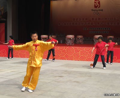 在宣武藝園舉行的宣南文化節閉幕式上,廣內街道表演空竹團體操