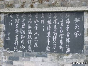 ![]() 沈園聞名的另一原因是與宋代大詩人陸游(公元1125—1209年)的一樁悲劇有關。陸游初娶表妹唐琬,夫妻恩愛,卻為陸母所不喜,陸游被迫與唐琬分離,后來唐琬改嫁趙士程,陸游再娶王氏。十余年后他們春游沈園相遇,陸游傷感之余,在園壁題了著名的《釵頭鳳》詞:“紅酥手,黃滕酒,滿城春色宮墻柳。東風惡,歡情薄,一懷愁緒,幾年離索。錯,錯,錯!春如舊,人空瘦,淚痕紅浥鮫綃透。桃花落,閑池閣,山盟雖在,錦書難托。莫,莫,莫!”。唐琬看到后感傷之余也依律賦了一首《釵頭鳳》:“世情薄,人情惡,雨送黃昏花易落。曉風干,淚痕殘,欲箋心事,獨雨斜欄。難,難,難!人成各,今非昨,病魂常似秋千索。角聲寒,夜闌珊,怕人詢問,咽淚妝歡。瞞,瞞,瞞!”。 此次邂逅不久唐琬便憂郁而死。陸游為此哀痛至甚,后又多次賦詩憶詠沈園,寫有“城上斜陽畫角哀,沈園非復舊池臺。傷心橋下春波綠,曾是驚鴻照影來”詩句。沈園亦由此而久負盛名。