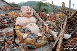在令人心痛的損失面前,值得安慰的是,距汶川200多公里的重慶大足縣雖然震感強烈,但是經過大足縣相關部門隨即對北山、寶頂的石刻的檢查發現,被列入世界文化遺產的大足石刻在此次地震中未受影響。