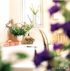 用綠色植物和嬌艷鮮花打造出浴室里的芳香世界,帶給你與眾不同的視覺享受.