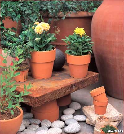 用木板支撐起一個花園平臺,放若干小花盆,前面擺色彩艷麗的花,后面種些高大植物,極具特色的角落就形成了。隨著花草的不斷生長,整體形狀會發生變化,如果你想維持原來的樣子,就要修剪枝葉了。