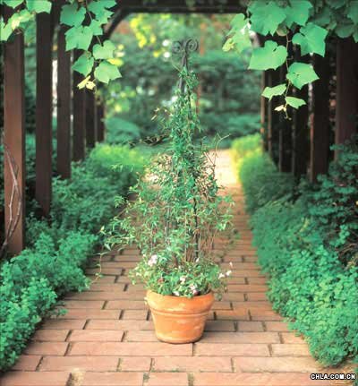 長春藤、菱葉藤等藤類植物很容易營造出裝飾性氣氛。你只需找些木棍、鐵棍和麻繩做出造型,引導它們生長的方向。而讓根部充滿綠葉的訣竅是給樹葉噴些水溶性肥料。