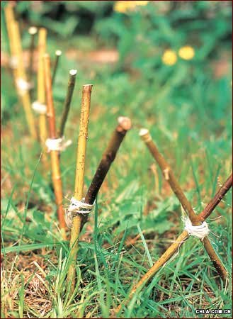 兩根中等粗細的樹枝折成適當的長度,“X”形疊放,鐵絲固定后用繩子捆綁,就可以構架出實用的迷你柵欄。