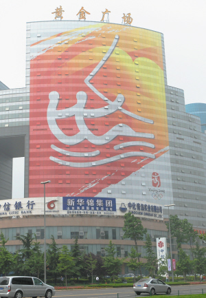 在福寧立交橋附近,一個奧運冠軍柱醒目地出現在人們的視野中。冠軍柱上方是一個寫有"中國加油"字樣的巨幅展板,下方則被分割成20多個方格,展示著奧運會各參賽項目的體育圖標。等到奧運會正式開賽時,這里將成為北京奧運冠軍的展示臺,體育健兒每取得一枚金牌,他的照片就將登"柱"亮相。