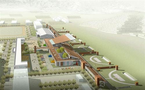 整個飛碟靶場分為主場館區(qū)和室外靶場兩大部分,主場館區(qū)由一層的各種功能用房、二層的觀眾看臺以及地下的飛碟儲存和運輸區(qū)組成,而室外靶場則面朝北京西山,一字排開的六個靶場可以滿足雙向和多向飛碟比賽的要求。在室外靶場中最為引人注目的是12座高低靶房,這些長城烽火臺造型的靶房,用灰磚砌筑而成,遠遠望去頗有些烽火相連的氣勢。而到正式比賽時,這些高低靶房將會在運動員發(fā)出指令后,自動隨機向空中拋發(fā)飛碟。