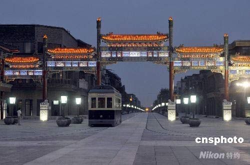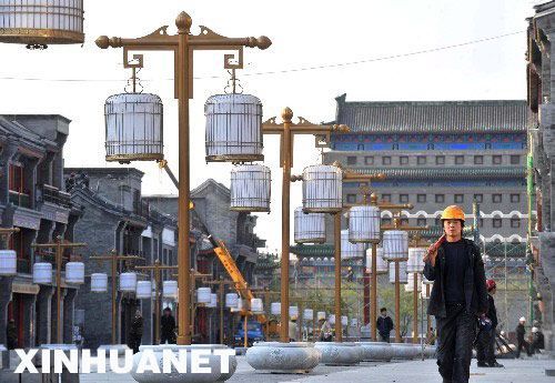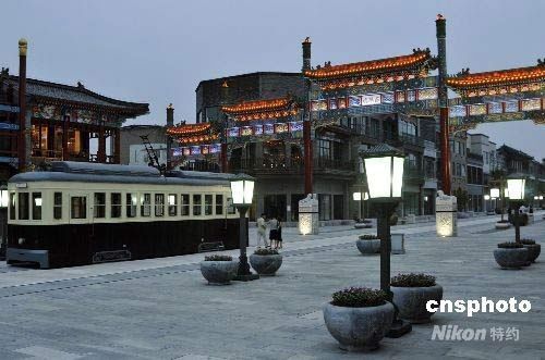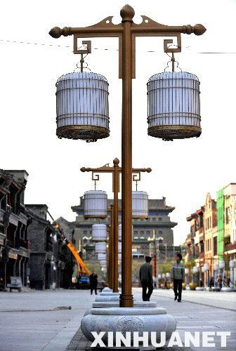 自2007年5月開始大規模修繕的前門大街,18日整治工作已接近尾聲。“亮燈”后,充滿“京味兒”的前門大街將整體亮相迎接八方賓客的到來。中新社發王宇婷 攝