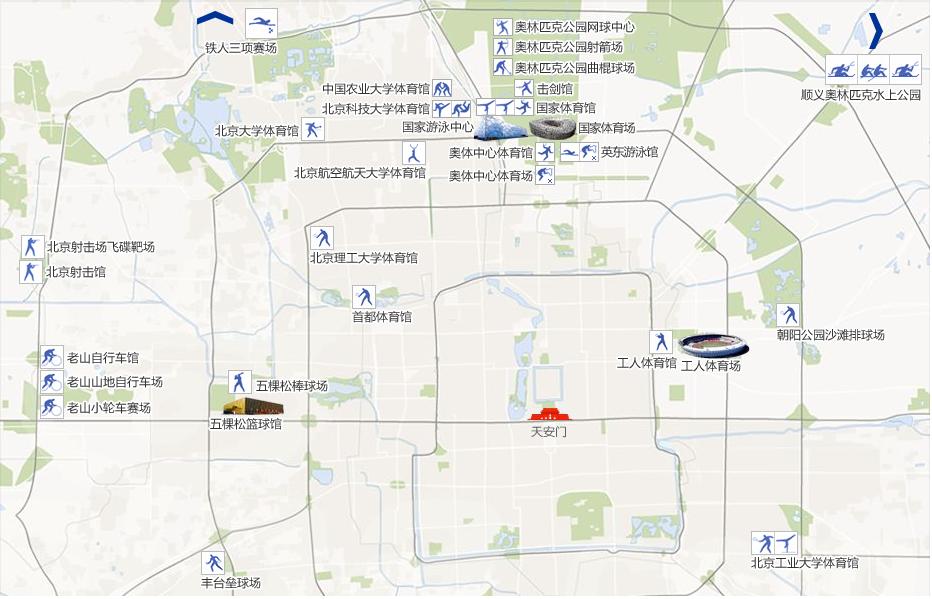 2008年第29屆北京奧運(yùn)會(huì)奧運(yùn)場(chǎng)館分布圖