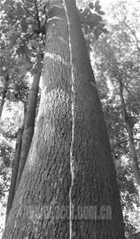 21日一早,當她和鄰居們來到香樟樹林鍛煉身體時,才發現前一晚上被火球撞上的那棵高達20多米的香樟樹其距離根部10米位置的樹干部位已被“炸開了花”,一條裂縫從“開花”部位自上而下一直延伸至大樹根部,齊整得如人為使用手術刀,恰好從中間將直徑為20多厘米的樹干一剖為二。