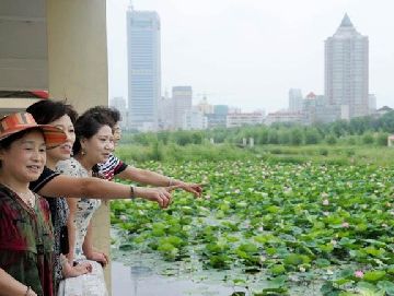 這處自然荷塘,每天都有眾多市民和游客前來賞花。園內的工作人員說,每年的這個時候,公園里的數千朵荷花都要開放,今年荷花池里的荷花比往年多出2倍,達到萬朵以上,成為城市里的一道亮麗風景。