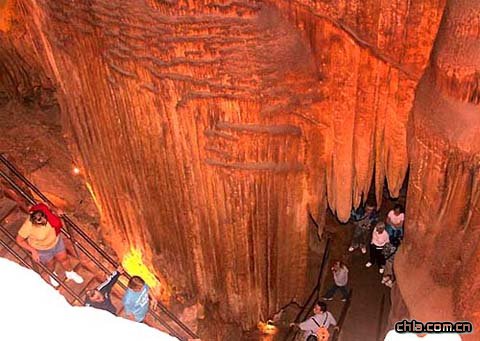美國猛瑪洞穴國家公園 猛瑪洞穴國家公園位于美國西部肯塔基州中部的山區(qū)。是世界上最大的由石灰石構(gòu)成的天然洞穴群和地下長廊。這個地下洞穴是幾百萬年以前水流經(jīng)過灰?guī)r沉積區(qū)時,溶蝕巖石形成的底下暗河通道。目前已探明的地下洞穴通道根據(jù)分布的高度不同分為五層,全長306公里。洞穴、山洞、巖洞和廊道組成這個寬闊的地下綜合體。林立的石筍和多姿的石鐘乳遍布洞中,洞內(nèi)景象壯觀,有兩個湖,三條河和八處瀑布。洞里還有一條20~60英尺寬,5~20英尺深的回音河。洞中還有地下暗河通過。洞穴已發(fā)現(xiàn)生活著200種以上的動物,有印第安那蝙蝠和肯塔基洞魚等。肯塔基洞魚是一種奇特的盲眼淡水魚。珍稀的動物如盲魚、無色蜘蛛顯示了動物對絕對黑暗和封閉環(huán)境的適應(yīng),此外洞穴中還生長著67種藻類、27種菌類和7種苔蘚類植物。洞內(nèi)是奇珍異景,神鬼莫測。洞外是花團(tuán)錦簇、燕語鶯吟。將近30英里長的格林河和諾林河蜿蜒流過公園,河里生活著各種各樣的魚類,其中的5種是世界上絕無僅有的。還有3種屬于洞穴魚類,70多種的淡水貽貝中包括3種瀕臨滅絕的品種生活在河邊的泥沙和卵石中。