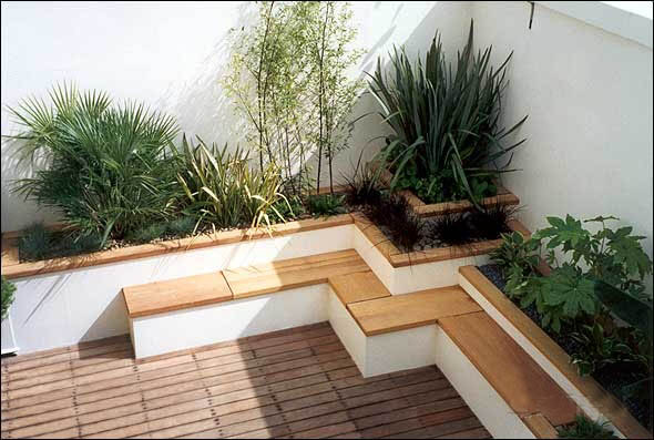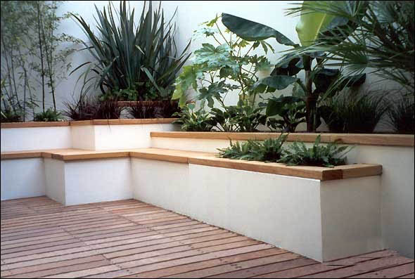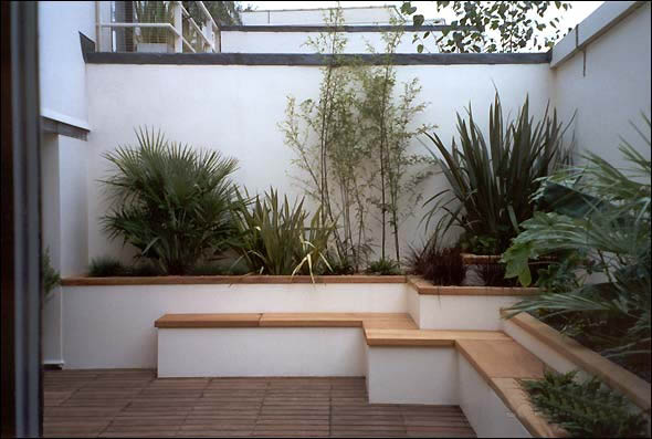 ![]() shad tuames屋頂花園位于倫敦東南部的Butlers海港,是6層樓的屋頂平臺。在這個屋頂花園里,Iroko木材增加了花壇和長椅的高度,使它們形成了4種不同的層面。這里分布著茂密的棕櫚樹、竹子、草和芭蕉,并且配有遠程控制的照明和灌溉系統。