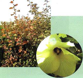 ![]() 海濱木槿(Hibiscushamabo) 生物學特性錦葵科木槿屬落葉灌木。高可達1~2米,分枝多,樹皮灰白色。葉片近圓形,厚紙質,兩面密被灰白色星狀毛。花單生于枝端葉腋,花黃色,花期6~10月,花冠鐘狀,直徑5~6cm,花瓣呈倒卵形。 生態習性海濱木槿對土壤的適應能力強,耐鹽堿.性喜光.抗風力強,能耐短時期的水澇,也略耐干旱,能耐夏季40℃的高溫,也可抵御冬季-10℃的低溫。 園林應用海濱木槿花徑大、花期長,入秋后季相變化明顯,葉片變紅,是優良的觀花觀葉灌木。可用于美化公園、廣場綠地、庭院、住宅小區等,也是花籬、花境的優秀植物材料,更是鹽堿地綠化的首選植物。