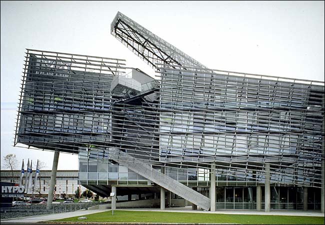 這個多用途的開發案由模弗西斯事務所于1995年取得了競圖首獎,并且已在2000年完工。業主是Hypo銀行,希望在奧地利的中型城鎮卡萊根福(Klagenfurt)興建其銀行總部,同時也包含辦公室、商業空間、住宿及公共空間。這個案子在其有限的時間及預算條件下,自然地朝向較為簡化的方向發展。