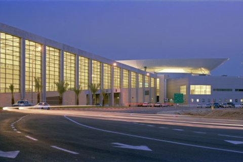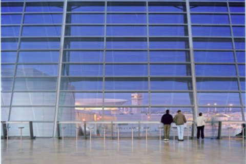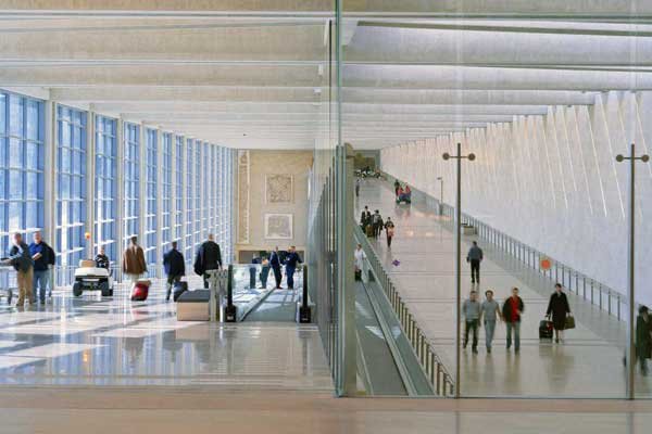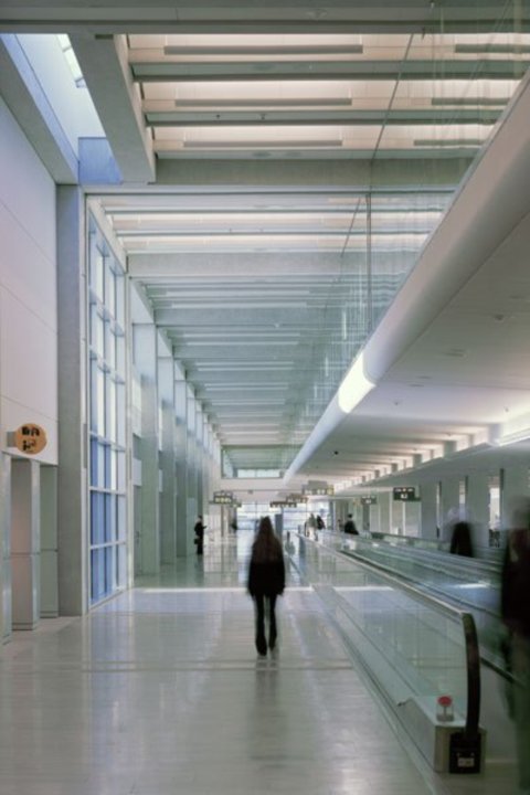 ![]() ![]() ![]() ![]() ![]() ![]() ![]() ![]() 在敵意環伺的國家中,要興建一座徹底安全的機場幾乎是不可能,位于以色列的班固利恩國際機場的建造從一開始就是個傳奇。為取代自1930年代英國托管巴勒斯坦時期早已過時不堪使用的第一航廈,第三航廈肩負以色列國際空中交通的重責大任。本計劃始于1998年,正處于巴勒斯坦人在加沙地帶和約旦河西岸的嚴重暴動時期,因此這個工程的提出象征著希望與未來。這項欲興建每年1,600萬人次載客量的航站計劃規模相當大,因此以色列機場管理局決議應當委托兩個設計團隊來擔綱機場的規劃工作。故SOM事務所紐約辦公室與耶路撒冷建筑師Karmi負責整體規劃與概念設計,并執行地面區票務系統與入境服務等系統的建立。生于以色列的建筑師Moshe Safdie位于美國麻州的事務所與TRA負責設計連結區、空中離境區與入口區。擴建后的機場集旅客輸送、物流發配、休閑娛樂與購物為一體。機場出入境候機大樓建筑面積27萬平方米,包括3個主營業區、24個登機口、133個登機柜臺、84個出入信道、10處安檢中心及面積達1.4萬平方公尺的2個購物區與免稅店,另建有停車位2500個。經過三年的設計階段,這兩組團隊費時數月做最后的協調與整合工作。SOM與Safdie均不希望航廈流于一般國際機場的形式,至少要反應出當地的文化與氣候特色。SOM負責的設計師Roger Duffy希望第三航廈能體現以色列人的生活觀,一個被古老歷史文化包圍的現代化都市。由于這座機場所安排的安檢程序特別嚴格,因此Safdie的設計團隊欲創造舒緩且親近的空間氣氛,以舒緩旅客因長久等候所造成的精神壓力。以色列對旅客與猶太人而言,可說是實質上或精神上的家鄉,因此機場管理局與建筑師特別強調機場出境與離境的動線安排,試圖體現以色列人在歷史演進中的命運。