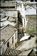 西遞村是一座古老的山莊,建于北宋,距今已有900年的歷史了。村莊因山川水勢,呈東北、西南走向。全村現存有明代民居建筑l幢,清代民居建筑122幢,建筑布局合理,風貌獨特。西遞村由正街、橫路街、后邊溪3條街道和40多條胡同及2條穿村而過的水溪將居民住房隔成井然有序的方塊,路面全用青石板鋪成,逶迤蜿蜒。一幢幢古民居層樓疊院,鱗次櫛比;家家青石門坊,粉墻青瓦,飛檐翹角,氣勢軒昂;高墻深巷,曲徑通幽,古樸典雅,村西南口胡文光刺史牌坊,為3間4柱5樓懸山式,巍峨壯觀。高13米,寬9.6米,為青石建筑,其雕刻極其精美。