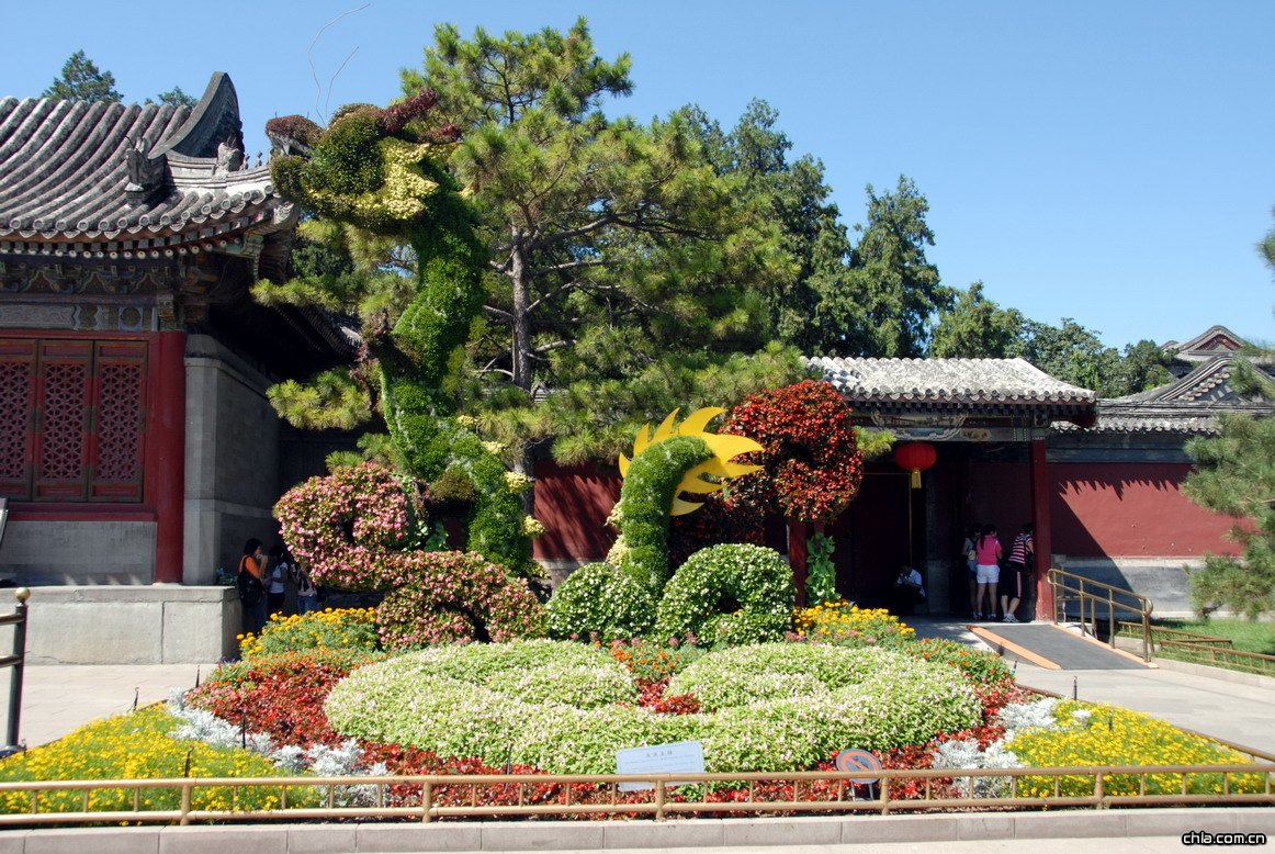 頤和園東門“龍鳳呈祥”花壇之一的“龍”造型。