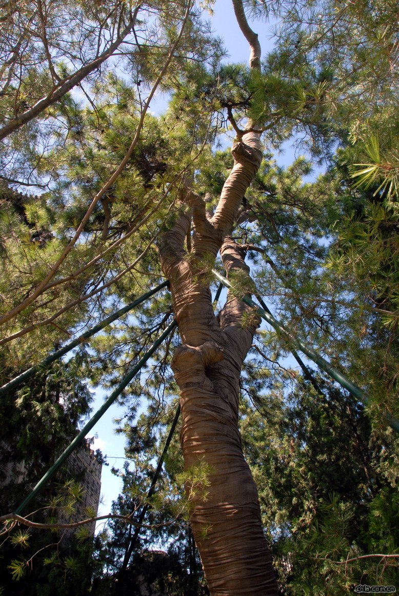 頤和園始建于1750年,園內名樹古木眾多,保護起來頗費功夫。戴主任介紹說,為了保護、復壯這些古樹他們煞費苦心,也采取過很多措施,現在主要的措施就是支撐樹體、防治病蟲害。戴主任指著一棵被麻布包裹著樹干的油松惋惜的說,這棵樹已經超過300歲了,一直生長不錯,直到今年年初被大雪壓折了頂部的樹枝。為了防治害蟲侵擾,園林工人已經將用藥液浸泡過的麻布纏繞樹干,使其在復壯過程中遠離蟲害。