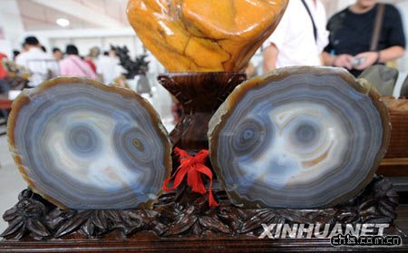 這是參展的一塊形似飛鷹的奇石 這是一塊形似鸚鵡的奇石 這是一位收藏家展示的“孿生熊貓”奇石 10月11日,第五屆柳州國際奇石節在廣西柳州市體育中心開幕,這次活動匯聚2000多件觀賞石、礦物晶體石、園林石、化石等奇石,令觀眾大開眼界。