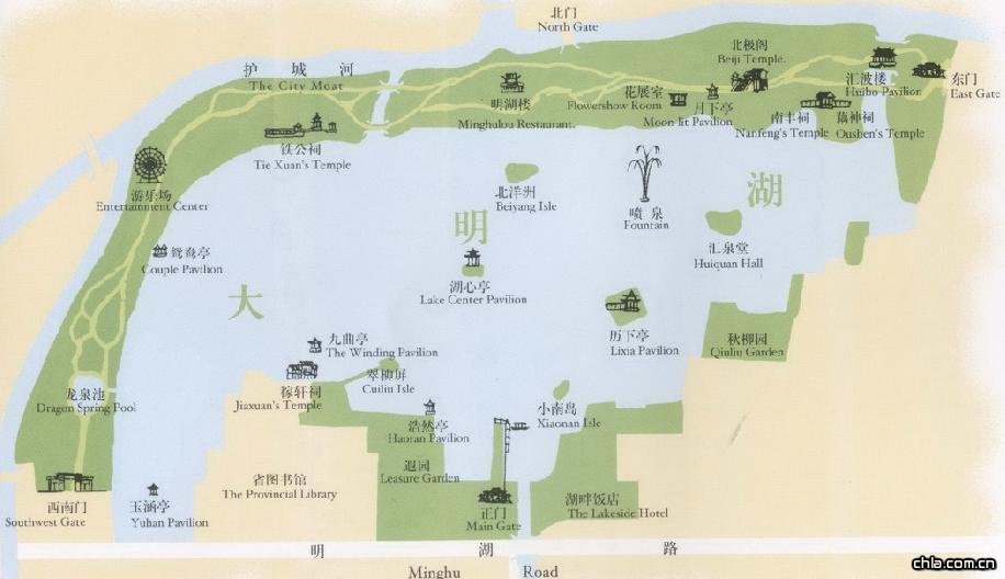 【大明湖簡介】 大明湖是濟南三大名勝之一,是繁華都市中一處難得的天然湖泊,也是泉城重要風景名勝和開放窗口。它位于市中心偏東北處、舊城區北部。大明湖是一個由城內眾泉匯流而成的天然湖泊,面積甚大,幾乎占了舊城的四分之一。市區諸泉在此匯聚后,經北水門流入小清河。現今湖面46公頃(690畝),公園面積86公頃(1290畝),湖面約占百分之五十三,平均水深2米左右,最深處約4米。蛇不見,蛙不鳴;淫雨不漲,久旱不涸是大明湖兩大獨特之處。 大明湖景色優美秀麗, 湖上鳶飛魚躍,荷花滿塘,畫舫穿行,岸邊楊柳蔭濃,繁花似錦,游人如織,其間又點綴著各色亭、臺、樓、閣,遠山近水與晴空融為一色,猶如一幅巨大的彩色畫卷。大明湖一年四季美景紛呈,尤以天高氣爽的秋天最為宜人。春日,湖上暖風吹拂,柳絲輕搖,微波蕩漾;夏日,湖中荷浪迷人,蔥綠片片,嫣紅點點;秋日,湖中蘆花飛舞,水鳥翱翔;冬日,湖面雖暫失碧波,但銀裝素裹,分外妖燒。 大明湖水色澄碧,堤柳夾岸,蓮荷疊翠,寧榭點綴其間,南面千佛山倒映湖中,形成一幅天然畫卷,沿湖的亭臺樓閣,水榭長廊參差有致,湖的南面有清宣統年間仿江南園林建造的遐園。遐園內曲橋流水,幽徑回廊,假山亭臺,十分雅致,被稱為“濟南第一庭園”湖邊假山上建有浩然亭,登臨其上,大明湖的景色一覽無余。湖對面北岸高臺上有元代建的北格閣,依閣南望,遠山近水,樓臺煙樹,皆成圖畫。清代書法家鐵保留下的“四面荷花三面柳,一城山色半城湖”的名句,繪聲繪色地道出了大明湖的佳絕之處。 大明湖名聞遐邇,游客眾多,每年接待國內外游客約二百萬人次,在濟南諸公園中最多。大明湖歷史悠久,景色秀美,名勝古跡周匝其間,湖畔有歷下亭、鐵公祠、南豐祠、匯波樓、北極廟和遐園等多處名勝古跡,其中歷下亭、鐵公祠為市級文物保護單位 。尤其大明湖乃繁華都市之中的天然湖泊,實屬難得。 ![]()