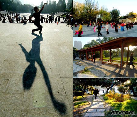 10月13日清晨,市民在中山公園里悠閑的健身。 剛剛改造完工中山公園,已經(jīng)成為一座現(xiàn)代生態(tài)園林,增建了很多人性化設(shè)施。潔凈的廣場(chǎng)周圍,多年長(zhǎng)成的大樹為納涼的人們遮蔭,林下種植很多原生態(tài)的野草和耐陰的花卉。人們順著小徑可以深入園林,雞蛋大小的黃色石頭無(wú)序地被灑在地上。中山公園的生態(tài),讓人深刻地感受到蘇州園林魅力。