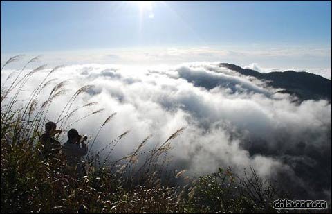 2008年11月8日,由于氣溫突降,貴州省雷公山國家森林公園出現流霧等自然景觀,迷人的秋日風光吸引了不少攝影愛好者前來拍攝。(人民網)