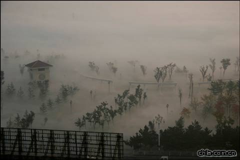 【山東蓬萊出現平流霧奇觀】2008年7月13日早晨5時許,一股“平流霧”突然將蓬萊閣籠罩,蓬萊市海濱出現罕見的平流霧奇觀,蓬萊閣及周圍景觀霎時變得若隱若現,如同海市蜃樓一般,壯觀的景象一直持續了兩個半小時。