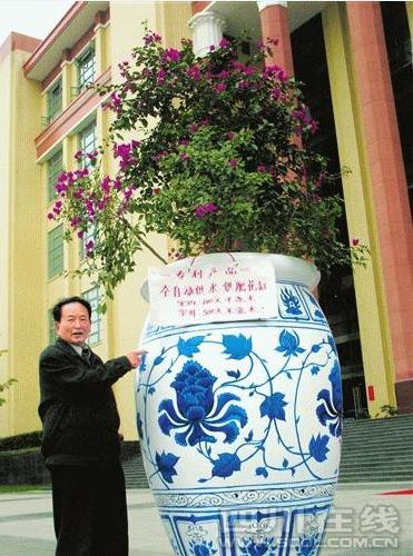 不用澆水的青花大瓷缸 中國專利周四川分會場昨日開幕,眾多民間發(fā)明備受熱捧 不澆水的花缸、新式立交橋、家庭節(jié)能燈、自動紗門窗、會發(fā)電的鞋……這些與百姓出行、生活息息相關的發(fā)明設計,昨天在成都的四川科技館引來不少人的目光。在2008第二屆中國專利周四川分會場,一批草根發(fā)明家展臺前門庭若市,實物展示、現(xiàn)場解說、資料發(fā)放等甚是熱鬧,搶盡了大中型企業(yè)和科研院校等專利發(fā)明“正規(guī)軍”的風頭。 最“扯眼”不用澆水的花缸 來到展會現(xiàn)場,首先映入眼簾的是門口一個1.8米高的“青花瓷”花缸。據(jù)發(fā)明者吳少伯介紹,這是他今年研發(fā)的一種盆栽技術,放在室內可以100天不澆水,室外可以300天不澆水。吳少伯說,他在花缸內部設置了一個蒸發(fā)系統(tǒng),類似于暖水瓶的內膽。先在蒸發(fā)系統(tǒng)內儲存一定量的水,然后結合蒸籠和煤油燈的原理持續(xù)均衡的給植物供水。這個發(fā)明成本不高,但效果挺好,放在室外,儲存水可以由雨水補給,一年內都可以不用澆水,就算是放在室內也可以100天不澆水。吳少伯說,這項技術還可以用于家庭盆栽,觀賞蔬菜種植等。 最“雷人”電能無限增長變壓器? “人類實現(xiàn)能量增長第一人。”在展會現(xiàn)場走了一圈,一個展臺前的宣傳單一下子吸引了記者的注意。能量能增長?那一直以來被物理界奉為金科玉律的能量守恒定律且不是成了一紙空文?