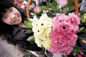 康乃馨做的“幸福狗”很熱銷