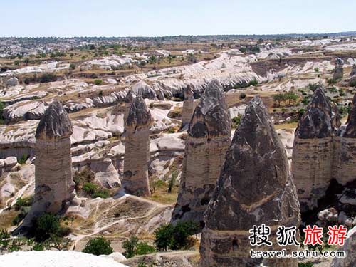 ![]() 戈雷梅國家公園和卡帕多西亞巖窟群---土耳其 景色壯觀,完全由腐蝕作用形成。戈雷梅山谷及其周圍地區(qū)包括鑲嵌在巖石中的圣殿。這些圣殿反映了反偶像崇拜后期拜占庭藝術(shù)的風(fēng)格。在這里我們可以看到4世紀(jì)時(shí)期傳統(tǒng)居住方式的建筑,如居民住所、隱居村落和地下城鎮(zhèn)。