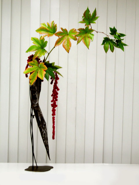 ![]() 花道即插花。公元700多年佛教從中國傳入日本時,一同傳去了“供花”裝飾。到15世紀,日本人在茶室里配置插花,花道因此被作為“茶道時裝”在老百姓中廣泛流行,并逐步發展成為傳統藝術。直到今天,花道仍然是人們特別是女性個人修養的標志之一。不過古典的花道均有其嚴格的固定模式,而現代花道發展并豐富了它的表現手法和理念。以精致、優美、華麗見長的草月流就是其中的代表。 去年11月,記者來到東京都港區赤坂草月會館采訪。當時,寬敞明亮的演示教學大廳里,20多位學員正在老師的指導下專心致志地苦練花道技藝。記者發現,他們采用的植物材料中有各種樹枝,而且插花容器也造型奇特。草月會館廣報部主任田宮真理女士說,這正是草月流的特點之一:枝為基礎,花作點綴。凡是自然界有的植物,都可經過處理后成為插 花材料;不管多大多小的場地,都可成為花道的表現空間。 河原蒼風于1927年始創草月流后就打破了古典花道在材料、容器、表現空間的舊有框框,刻意展現自由的、多樣化的與現代生活相適應的自然風格。其子宏、女茜在60到70年代進一步提升了該流派的藝術標準,他們同時請進國外特別是美國的藝術家,包括舞蹈、音樂、繪畫等領域的藝術家,進行技藝交流,兼收并蓄,豐富了草月流的內涵。從80年代到90年代,他們的作品享譽世界,特別是宏的巨型作品在海內外引起空前轟動。他因擅長以竹為材料的巨型作品而被稱為“竹子大師”。有關人士評介:沒有宏,日本與美國的藝術交流是不可能的。 記者還發現,學習花道的學員多為中年女性,其中有5位是來自歐洲的青年男女。田宮女士說,有的學員取得一定等級的證書后,就可以回去自己辦培訓班了。除東京的總部外,其在世界各地的分支機構有50多個。當然,學費昂貴,使用的花材還得自己買,價格不菲,許多花材靠進口。所以,能學花道的,首先得生活富裕,其次是有時間。可見是否會花 道,也成為日本人衡量一個人身份和教養的尺度之一。不少大公司還請老師上門給職員上課,以提高他們的修養,自然價格也便宜些。