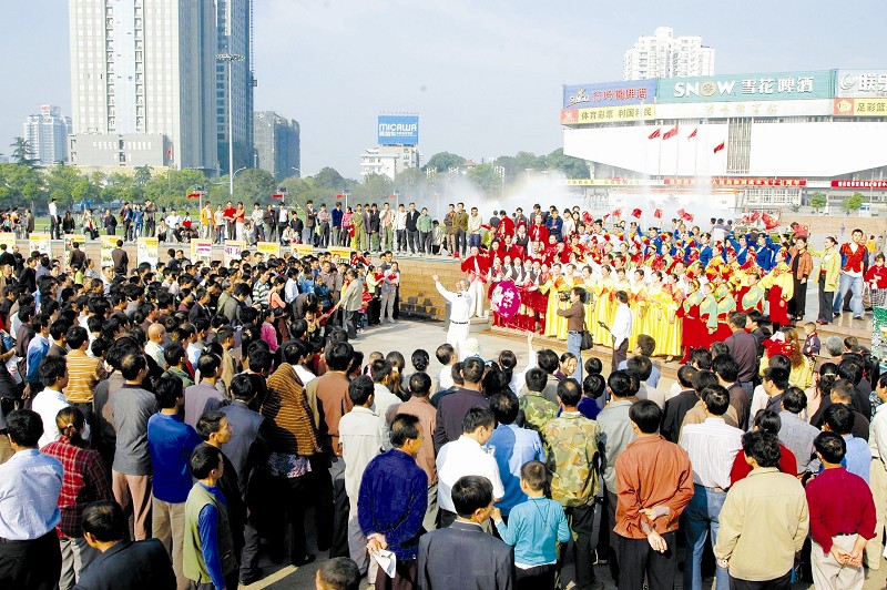 圖為:洪山廣場(chǎng)是沒有圍墻的大舞臺(tái),各類文藝活動(dòng)給市民帶去歡樂(lè)(資料圖片) 對(duì)于生活在武漢的人們來(lái)說(shuō),洪山廣場(chǎng)仿佛是一個(gè)親切的老鄰居。休閑廣場(chǎng)、繽紛舞臺(tái)、城市坐標(biāo)……諸如此類的字眼,隨便拎出一兩個(gè),都不能代表洪山廣場(chǎng)的特色,只有把它們匯聚到一起,才能體現(xiàn)出真正的洪山廣場(chǎng)。如今,因地鐵施工,盡管許多市民萬(wàn)分不舍,也不得不面臨洪山廣場(chǎng)被拆重建的事實(shí)。我們盼望著重建的洪山廣場(chǎng)能夠讓我們繼續(xù)快樂(lè)的光陰,也希望通過(guò)我們的鏡頭和筆墨,讓即將消失的老洪山廣場(chǎng)成為心中柔軟的記憶。 與市民“血脈相連” 八成游客不愿拆洪山廣場(chǎng) 今年國(guó)慶,洪山廣場(chǎng)通過(guò)發(fā)放“開門評(píng)園”問(wèn)卷對(duì)游客進(jìn)行了調(diào)查,結(jié)果表明,八成游客不希望洪山廣場(chǎng)被拆掉。不拆掉的原因,除了可惜,自然是舍不得。 這里,看似一個(gè)普通的休閑廣場(chǎng)。但當(dāng)建筑完全地融入了市民的生活,那么,就會(huì)與感情有關(guān)。 12月6日中午,晴。洪山廣場(chǎng)和過(guò)去的歲月一樣,向游人敞開懷抱。而在這里的游客,似乎不純粹是游客。“在這里拍一下,上次我們就是在這棵樹旁合的影。”家住湖北大學(xué)的小楊,在一棵靠近洪山體育館的樟樹下,讓丈夫給她拍照。她記得,那次合影還是兩人剛談戀愛的時(shí)候,樟樹也是剛剛種下。此后,兩人經(jīng)常到洪山廣場(chǎng)約會(huì)。如今,他們的愛情修成正果,樟樹也已長(zhǎng)得枝繁葉密。得知洪山廣場(chǎng)要拆掉,兩人特意來(lái)到這里,希望用鏡頭留下甜蜜的回憶。 家住水果湖的程爹爹和老伴一起在廣場(chǎng)上散步。他們親眼見證了洪山廣場(chǎng)從剛剛“出生”、然后進(jìn)行“美容”改造的過(guò)程。平常他們只是在早晚到洪山廣場(chǎng)去鍛煉,如今,只要有空,兩人就過(guò)來(lái)轉(zhuǎn)轉(zhuǎn)。程爹爹說(shuō),不知道拆掉重建需要多長(zhǎng)時(shí)間,希望在拆之前,能夠多看看這里的一草一木。“從報(bào)紙上登出洪山廣場(chǎng)要拆的消息后,就有很多市民特意趕過(guò)來(lái)給洪山廣場(chǎng)拍照了。大家都很舍不得。”洪山廣場(chǎng)管理處有關(guān)人士告訴記者。 還有不少市民在網(wǎng)上發(fā)帖子,邀請(qǐng)同伴一起到洪山廣場(chǎng)拍照,進(jìn)行告別游。“我住在水果湖,從小到大看著洪山廣場(chǎng)的成長(zhǎng),它也見證了我的成長(zhǎng),閑情時(shí)我會(huì)在它上面走走轉(zhuǎn)轉(zhuǎn),吹吹小風(fēng),看看各式各樣的人群,他們悠閑著,他們滿足著,他們幸福著,多少美好的時(shí)刻是在它上面發(fā)生的!記得第一次戀愛的時(shí)候,我就是在這里約會(huì)。分手的時(shí)候我就坐在這,看著音樂(lè)噴泉,傻傻地坐著。”這是網(wǎng)友David的一段告白。 17年來(lái)三次改擴(kuò)建 洪山廣場(chǎng)的前世今生 洪山廣場(chǎng)管理處主任段建國(guó)與洪山廣場(chǎng)有著難以割舍的緣分——以前是作為施工單位全面參與洪山廣場(chǎng)的改造,如今是作為管理者來(lái)管理這一片區(qū)域。說(shuō)來(lái)也巧,從1991年開始,洪山廣場(chǎng)歷史上的三次改、擴(kuò)建工程,他都參與了。之前,他在武漢市園林建設(shè)工程公司擔(dān)任要職,該公司負(fù)責(zé)武漢市所有公園的建設(shè)。 段建國(guó)告訴記者,為紀(jì)念建黨70周年,以及紀(jì)念董必武同志誕辰105周年,1991年,湖北省、武漢市政府共同投資,開始籌建董必武紀(jì)念廣場(chǎng)。 這次改造之前,這一塊區(qū)域本是姚家?guī)X的苗圃,有一片小樹林,還有個(gè)小魚塘,周邊的居民經(jīng)常來(lái)小樹林里下下棋,休息娛樂(lè)。中北路穿插而過(guò),廣場(chǎng)被分為東、西兩部分。當(dāng)時(shí)的中北路還是四車道。 1991年的建設(shè)主要是在東廣場(chǎng)進(jìn)行。為了紀(jì)念董必武誕辰105周年,他們特地從南京運(yùn)回了一座4米高、1噸重的董老的銅像,而且在其周圍栽種了105棵雪松。如今,這些雪松已成參天大樹。其間,為防止雪松種得太密集,影響長(zhǎng)勢(shì),便移走了2棵。“為了安全運(yùn)回董老的銅像,一路上有兩名武警持槍跟隨。”段建國(guó)稱。 東廣場(chǎng)改造一新,一旁的西廣場(chǎng)就顯得有些破舊了。1993年,配合東廣場(chǎng),武漢市開始整治西廣場(chǎng)。但這次的改建工程只能說(shuō)是“小打小鬧”,西廣場(chǎng)上原來(lái)的停車場(chǎng)被拆掉了,安裝了噴泉。西廣場(chǎng)也改名為音樂(lè)噴泉廣場(chǎng)。 改造完后,西廣場(chǎng)周邊都種上了2米高的龍柏,如似一道圍墻,把游客隔離在外。每天晚上,西廣場(chǎng)上就放露天電影,2元錢一個(gè)人。如今,露天電影已成為許多武漢人不可抹去的回憶。 1997年,洪山廣場(chǎng)的第二次改造開始,力度比1993年要大。這次改造仍然在西廣場(chǎng)進(jìn)行,總共花費(fèi)了200多萬(wàn)元。圍墻似的龍柏被拔了,廣場(chǎng)上鋪了石材,噴泉也對(duì)外開放,西廣場(chǎng)的兩個(gè)角各修建了一廁所。 漂亮的洪山廣場(chǎng)展現(xiàn)在市民眼前,成為大家休閑的一個(gè)好去處。當(dāng)時(shí),一天的游客量有1萬(wàn)多人次。 2000年,為了提升城市功能,