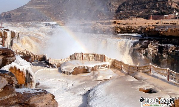 受連日來的強冷空氣影響,在地跨晉陜兩省的黃河壺口瀑布景區(qū),冰掛、彩虹和壯觀的瀑布相映成趣,吸引了眾多游人和攝影愛好者。