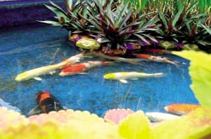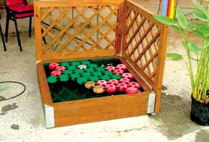 如果您想在一般公寓的小陽臺上建個小小生態(tài)池,建議選擇木框外緣為90×90×25厘米的水箱比較好。箱內(nèi)圍上相應(yīng)的防水布,倒入放置在水桶內(nèi)的隔夜自來水,還要檢查有無泄漏。接下來,您把用作固定植物的水培杯、花飛碟、發(fā)泡煉石和小石子,放在水槽里沖洗干凈。然后,把花飛碟放進(jìn)生態(tài)池里,一個個用搭扣扣好,排列的方式最好色彩相間,符合審美要求。 養(yǎng)水。最好是在池內(nèi)放養(yǎng)魚蝦,錦鯉、金魚、藻蝦等等,錦鯉不要太大,色彩最好鮮艷點(diǎn)。一群美麗的錦鯉在撒歡著,非常養(yǎng)眼。記住給魚蝦定量喂食,不能讓殘留的魚食影響水質(zhì)。魚類的排泄物會通過細(xì)菌的分解,提供蔬菜所需的營養(yǎng),不必再加其它肥料了。