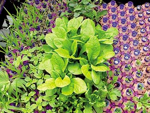 將菜秧移種在水培杯里,底下是固定石子和發(fā)泡煉石,再隨苗帶些保濕土鋪在上面,最后將杯子放入飛碟里固定在水上即可。如果陽臺較大,可以放置兩個生態(tài)池,看起來效果更好,除了種蔬菜,還可種食用香草、觀賞植物,使陽臺五彩繽紛、美不勝收。 當(dāng)然,如果你家有個寬敞的屋頂,開發(fā)的生態(tài)園便有足夠大,而且會布置出一個特別氣派的菜園子來。