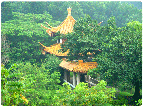 兩宜亭位于植物園大門至仙湖的中間位置,游人如步行游覽至此正好在亭內歇息,同時也可在周圍觀賞大自然的美景,賞山觀水,兩全其美,故取名“兩宜亭”。