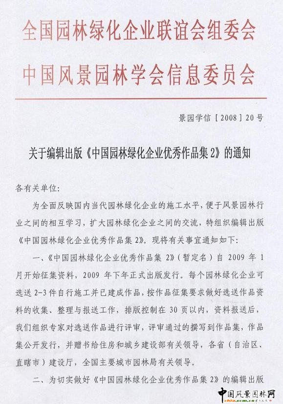 關于編輯出版《中國園林綠化企業優秀作品集2》的通知