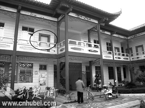 天門市園林局辦公大樓(黑圈處為案發現場——局長辦公室)