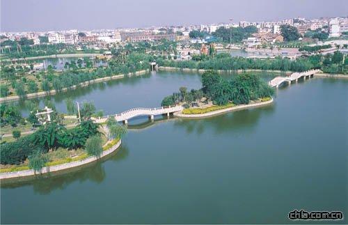 ——東莞市嶺南園林建設有限公司 以"水木石排"為主題,充分利用原有場地內廣布的河流魚塘,良好的植被條件,運用嶺南傳統造園手法,精心設置人工湖泊、泳池、噴泉、瀑布假山等水體景觀,結合亭臺、廊架、景觀場、集會廣場、露臺劇院等建筑要素,借助豐富多彩的亞熱帶植物材料,模擬自然生態環境,配置人工生態群落,營造清新幽雅,和諧宜人的城鎮休憩娛樂空間。 項目面積:220000㎡ 峻工時間:2003年1月 ![]()