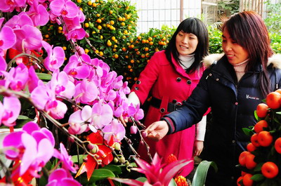 1月13日,市民在福州市花鳥(niǎo)市場(chǎng)挑選蝴蝶蘭。