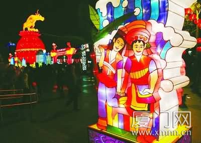 燈會特別設置了兩岸交流展區。(鄭曉東 攝) “一曲笙歌春如海,千門燈火夜似晝”。昨晚6時多,在省委常委、廈門市委書記何立峰和市委副書記、市長劉賜貴的共同啟動下,2009年廈門元宵燈會正式亮燈。霎時間,白鷺洲西公園成了燈影交融、璀璨絢爛的花燈世界,到處可見歡樂的笑臉,隨處可聞開心的笑聲。市領導杜明聰、裴金佳、陳耀中等出席了亮燈儀式并和市民們一起觀看了花燈。 人海,燈廊。背襯著流光溢彩的廈門夜景,徐來的湖風中,人們在瑰麗的彩燈前展顏歡笑、合影留念,感受新春佳節的喜慶氣氛。燈會以“輝煌30年”為主題,突出展示海峽兩岸經濟文化交流成果,通過現代科技與傳統燈藝的完美結合,呈現出一派“火樹銀花不夜天,花燈璀璨慶和諧”的瑰麗景象。正如副市長裴金佳在致辭中所說,燈會集中展示了廈門改革開放30年來,全市上下一心,貫徹落實科學發展觀,搶抓機遇,開拓奮進,在經濟社會建設發展中取得的豐碩成果,表達了全市人民繼續吹響時代的號角、決心把廈門建設得更加美好的堅定信念和歡慶盛世、歌頌憧憬美好幸福生活的喜悅心情,預示著廈門在新的一年里,經濟社會各項事業發展必將“牛氣沖天”。 本屆燈會是首屆海峽兩岸共同參與的燈會,海峽對岸的彩燈也來赴這場曠世盛宴。臺中、金門、澎湖三個市、縣各選送了一個燈組參展,燈組表現的都是當地標志性建筑或特產,充滿喜慶、吉祥的氛圍。揚州市等內地城市也前來參展,他們不僅帶來了制作精美的維揚彩燈,更獻上了精彩的歌舞節目,向廈門市民和各地游客推介揚州。廈門的元宵燈會已經走出廈門,成為面向全國、具有較高影響力的宣傳推介平臺。 人如潮、燈如海。許多市民和外地游客扶老攜幼、呼朋引伴來到白鷺洲。徜徉在燈海光廊中的人們,嘖嘖贊嘆。吳先生帶著愛人和上小學的兒子特地從漳州趕來觀燈,他激動地對記者說,“去年的燈會我也來看了,非常喜歡,所以今年早早的就帶著家人趕過來了,感覺今年的花燈比往年形式更多樣,更好看。”人群中,小朋友們更是興高采烈,爭先恐后地笑喊著:“真漂亮,真好看,真好玩。” 據悉,本次燈會由廈門市委、市政府主辦,廈門市市政園林局承辦,整個燈會共有80組大型燈組,分為四大板塊,即主題展區、兩岸交流展區、海西新貌展區、斗燈大賽展區。燈會展出時間為1月28日(正月初三)至2月12日(正月十八),每晚6時30分至10時亮燈。