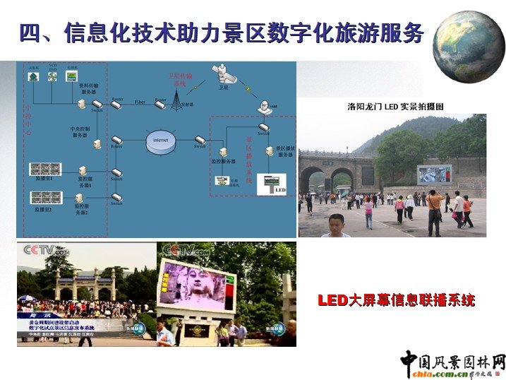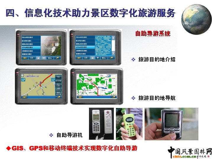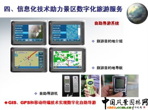 [數字|旅游服務],即數字化的虛擬旅游服務。即:借助地理信息系統、攝影測量等專業技術,通過互聯網展示旅游景點的三維場景,并加入特色景點的三維模型、視頻錄像,根據游客的興趣愛好,按照既定的旅游線路,實現基于虛擬三維場景的飛行、漫游,給人一種身臨其境的感覺。