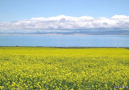 水邊有方圓幾里的場(chǎng),還有一片帳篷,一眼就看得出那是為了作秀而建的,用俺們東北話說(shuō)就是整景兒。還有一小片油菜花,都快謝得差不多了。一條平坦而筆直的路通向湖的西邊,路邊是工整的花壇,其中也有一小片油菜花。早聽(tīng)人說(shuō)起青海湖邊的油菜花漫山遍野開(kāi)得鋪天蓋地氣勢(shì)磅礴,我親眼所見(jiàn)卻是這樣一個(gè)象盆景工藝一樣的人工園林。