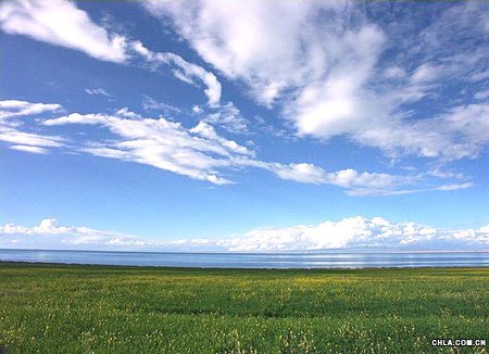 依然是被造化擺弄的三樣景物,最上面是天空,中間是湖水,下面是草原,層次鮮明地向我顯示著大自然的神奇魅力。
