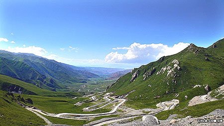 從西寧的西郊起,就開(kāi)始是重重疊疊的山巒,那高速公路就建在山中。那種感覺(jué)真的很奇特的,坐在向西超越著黃昏飛奔的車(chē)?yán)铮劭茨荷珴u漸襲來(lái),可是翻過(guò)一個(gè)山頭就會(huì)發(fā)現(xiàn),燦爛的霞光依然還在那里,天色也比山這頭明亮許多。就這樣車(chē)子翻過(guò)一個(gè)又一個(gè)山頭,一次又一次擺脫著暮色的撲擊,一次又一次追趕上將逝的落日。直到天完全黑下來(lái),賽跑的游戲才告結(jié)束。