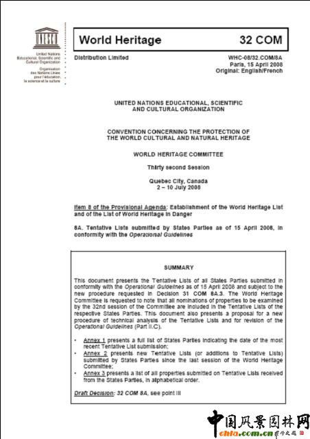 8A. 截至2008年4月15日,締約國(guó)所提交的預(yù)備名單