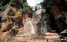 樂山大佛位于峨眉山東31公里的樂山市,依凌云山棲霞峰臨江峭壁鑿造而成,又名凌云大佛,為彌勒坐像,是東山最著名的景觀