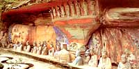 大足石刻位于四川省重慶市,以大足縣、潼南縣、銅梁縣、壁山縣為范圍,在此地可賞到代表中國唐、宋時期的石刻造像藝術。大足石刻是大足縣境內主要表現為摩崖造像的石窟藝術的總稱。大足石刻群有石刻造像70多處,總計10萬多軀,其中以寶頂山和北山摩崖石刻最為著名,其以佛教造像為主,儒、道教造像并陳,是中國晚期石窟造像藝術的典范,規模之宏大,藝術之精湛,內容之豐富,可與敦煌莫高窟、云岡石窟、龍門石窟齊名。